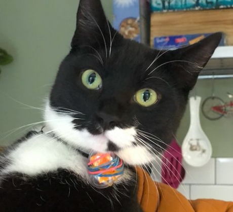 Ваш кот любит приходить к нам, когда гуляет. Он садится у двери и мяукает, чтобы его пустили. Кот очень смешной, мы его обожаем! Понятия не имеем, откуда он приходит. Как его зовут? 🙂