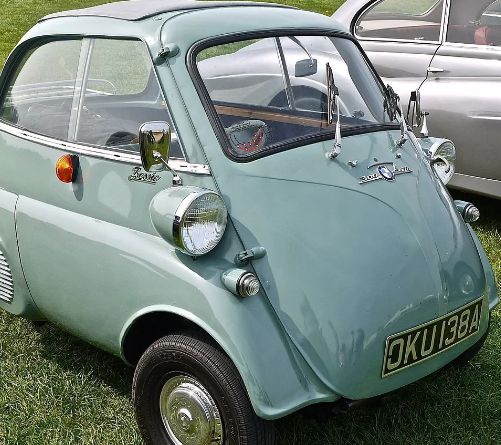 BMW создал этот автомобиль, похожий на клопа, в 1955 году. Isetta – самая странная машина немецкой компании. Вся ее передняя часть – это дверь, на которой установлена приборная панель. В случае аварии с авто можно вылезти через полотняный крышу.