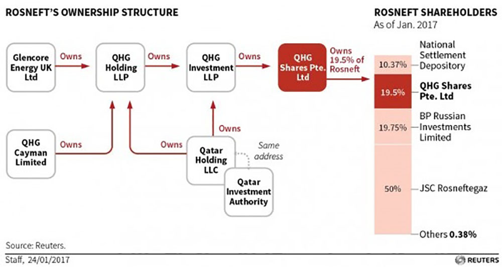 Торговый дом Glencore и компания Qatar Investment Authority (QIA) недавно стали акционерами «Роснефти» – крупнейшей российской нефтяной компании – благодаря многомиллиардному соглашению.