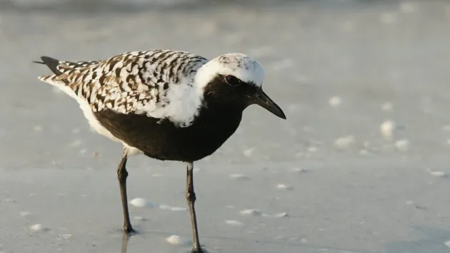 «Пока тепло еще покормится в нацпарке с другими куликами, а потом полетит дальше на Юг», — говорится в сообщении. Этот вид — Pluvialis squatarola — гнездится в тундрах Евразии и Северной Америки, а во время сезонных перемещений появляется практически по всей Украине. Сивка среднего размера: её масса составляет 170-225 г, размах крыльев достигает 79 см. Для брачного наряда самцов характерны контрастные чёрные и белые участки оперения, а во внебрачный период птица имеет более скромный серовато-бурый вид.