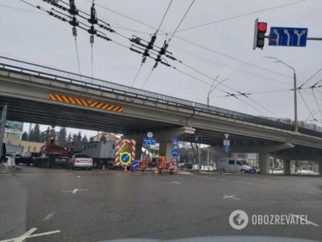 Рабочие приступили к ремонту моста, расположенного рядом со станцией метро "Нивки" в Киеве. 1 февраля на нем обнаружили трещины на защитном слое балок.