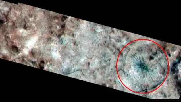 У березні 1998 року апарат Galileo, який вивчав Юпітер і його супутники, здійснив близький проліт повз Європу. Вважається, що під льодом супутника знаходиться океан, в якому може існувати життя. Під час прольоту зонд наніс на карту ударну структуру діаметром 22 кілометри, яка отримала назву кратер Мананнан. Усередині неї апарат виявив щось дивне.