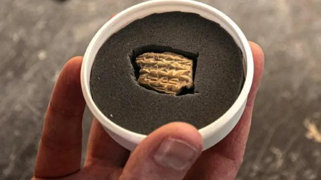 Ця керамічна деталь близько 2,5 см свідчить про листування між стародавніми правителями. Історики вважають, що вона була частиною царської булли, або відбитка печатки, яку використовували для передавання повідомлення про сплату податку чи інших зобов’язань. У написі зазначено термін – а саме перший день місяця Ав – і згадується командир колісниці.