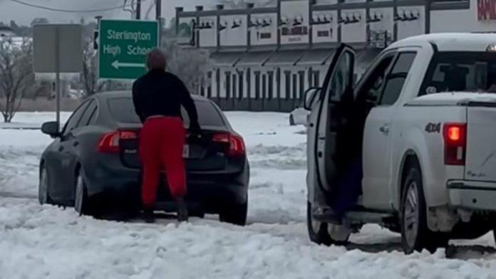 Південні штати США зазвичай не турбуються про сніг та ожеледицю, але нещодавній зимовий шторм приніс незвично холодну погоду в місця, які до цього абсолютно не звикли. Це торкнулося і містечка Стерлінгтон у штаті Луїзіана, де місцева поліція вдалася до радикальних заходів у боротьбі з заторами.
