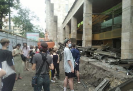 У понеділок, 12 липня, на будівельному майданчику навколо модерністського павільйону на Січових Стрільців, 49 з'явилась важка техніка, повідомляють активісти спільноти «Зберегти Квіти України». Попри масові протести киян, пам'ятку модерністської архітектури початку 80-х років авторства Миколи Левчука почали зносити. Активісти та сусіди забудови зняли частину паркану та заблокували роботу техніки.