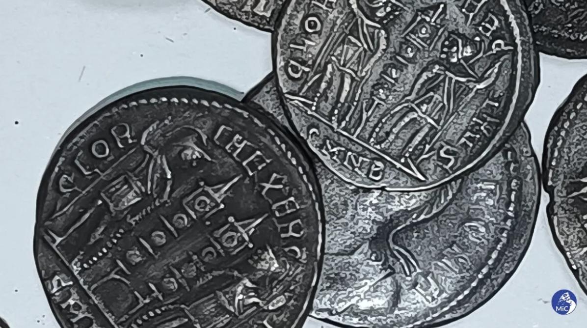 Йдеться переважно про бронзові нуммі – монети, запроваджені під час грошової реформи імператора Діоклетіана у 294 році нашої ери. Карбування знайдених екземплярів датують приблизно 324 – 340 роками. На них зображені характерні для IV століття мотиви – Sol Invictus, христограма Chi-Rho, укріплені фортеці та сцени перемог.