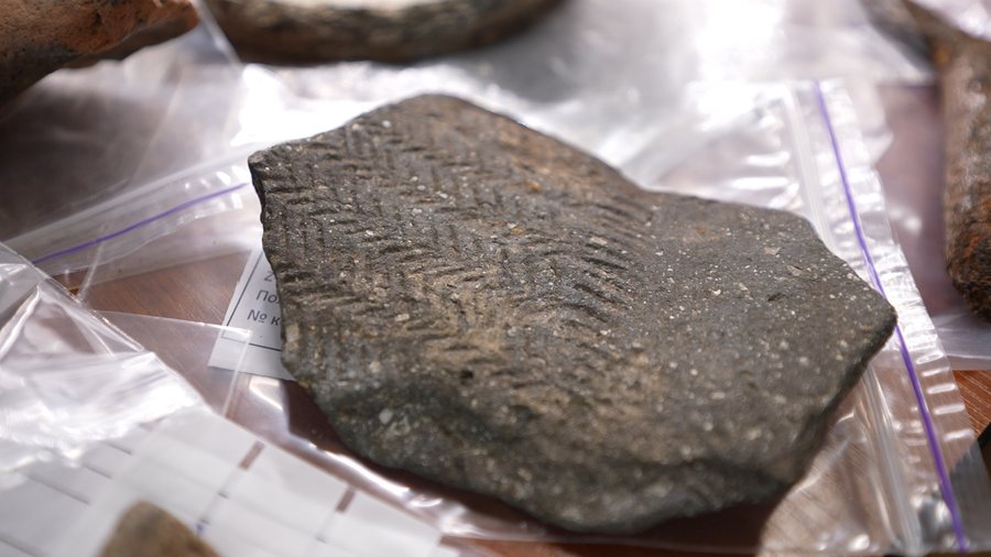 Серед знахідок, котрі були донедавна приховані водами Дніпра, був уламок ліпного посуду доби енеоліту, розповів Анатолій Волков. “Характерний гребінчастий візерунок, таким візерунком оздоблювали посуд приблизно чотири з половиною – три з половиною тисячі років тому. Змішувалася глина з великим додаванням піщаної мушлі, піску, дрібного каміння, ліпили такий посуд”, – зазначив Волков.
