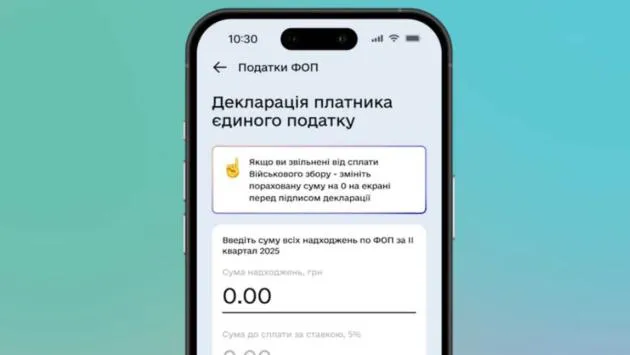 Якщо за квартал дохід був нульовим – потрібно вкажзати “0”, і тоді військовий збір не буде нарахований. ФОПам 3 групи нагадали, що останній день подання декларації – 11 серня 2025 року. Після подання декларації одразу доступна функція сплати податків.