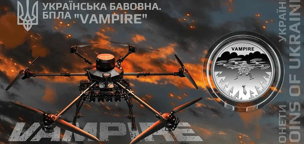 “Vampire” зарекомендував себе як високоефективний засіб точкового ураження, дистанційного мінування та гуманітарної допомоги. Його активно використовують провідні підрозділи сектору безпеки й оборони України, а понад мільйон проведених операцій засвідчують його ефективність та бойову надійність”, – йдеться в описі монети.