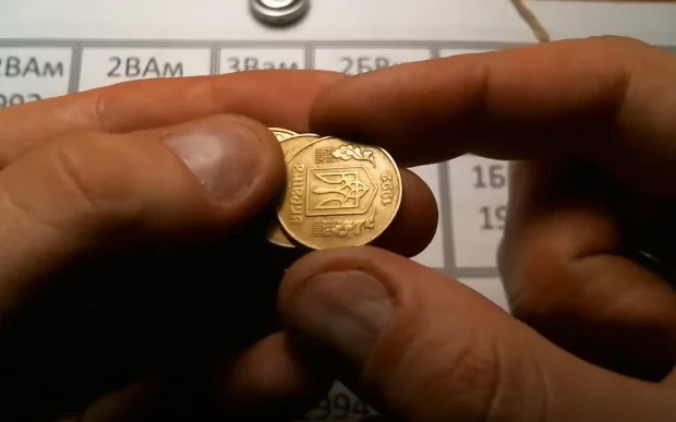 Ще одна дорога знахідка – монета номіналом 10 копійок зразка 1992 року з рідкісним різновидом штампу 1.34АБм. Такі екземпляри дуже рідко зустрічаються в обігу, і ще рідше виставляються на продаж на аукціонах. При цьому ціна може досягати від 5000 до 7000 грн, залежно від стану екземпляра.