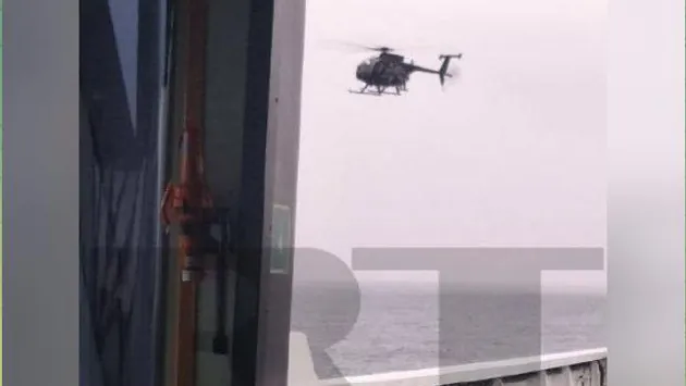 Пропагандистський телеканал RT опублікував відео та фото висадки американського десанту на танкер «тіньового флоту» РФ Marinera, який уже два тижні намагається відірватися від берегової охорони США.