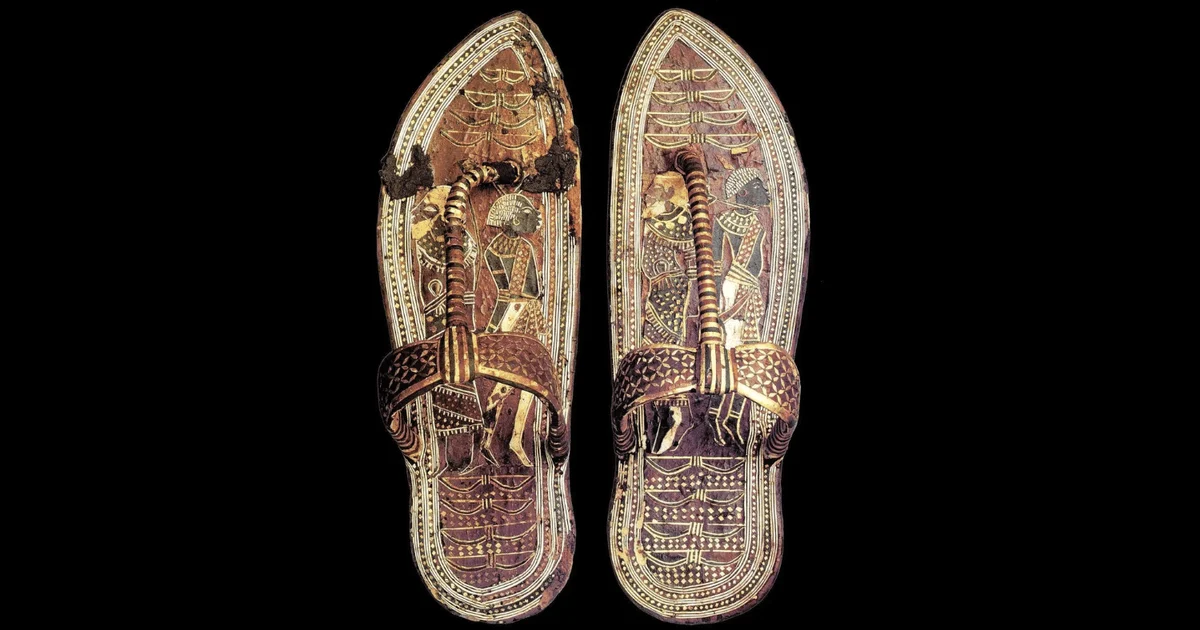 У колекції Єгипетського музея у Каїрі зберігається незвичайна пара сандалій віком близько 3300 років, що належала Тутанхамону. Їхня особливість — зображення зв’язаних полонених на устілках. Композиція була створена так, щоб правитель буквально «наступав» на ворогів, підкреслюючи свою абсолютну владу. Про це повідомило видання Live Science.