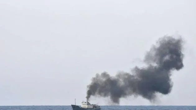 На борту спалахнула пожежа, а судно втратило керування. Про це повідомляє агентство Associated Press (AP), у розпорядженні якого опинився аудіозапис переговорів екіпажу з іншим судном, а також фото та відео, на яких зображені клуби чорного диму над кораблем.