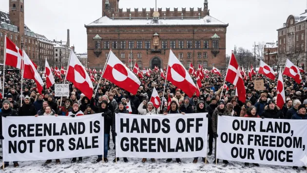 Бажання президента США Дональда Трампа отримати контроль над Гренландією спровокувало масштабні акції солідарності у Європі. У суботу, 17 січня, тисячі людей зібралися на Ратушній площі Копенгагена, розмахуючи червоно-білими прапорами Гренландії.