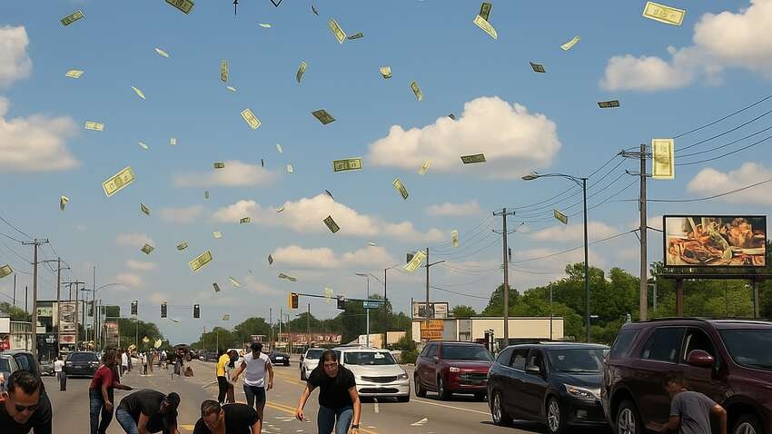 У місті Детройт, штат Мічиган, очевидці стали свідками справжнього “дощу з грошей”. Над жвавою вулицею Gratiot Avenue несподівано з’явився вертоліт, з якого почали розкидати тисячі доларів готівкою. Люди зупиняли автомобілі прямо посеред дороги та вибігали збирати купюри з асфальту — рух на всіх шести смугах тимчасово паралізувався.