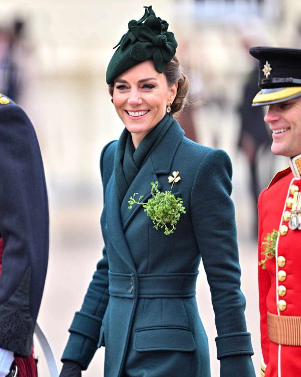 Принцеса Кейт є полковником Ірландської гвардії, тому 17 березня – для неї особливий день. Для святкування Дня святого Патріка вона, за традицією, вирушила до казарм Веллінгтона, щоб поспілкуватися з ірландськими гвардійцями та їхніми сім’ями, а також переглянути парад, повідомляє Bilshe.com.