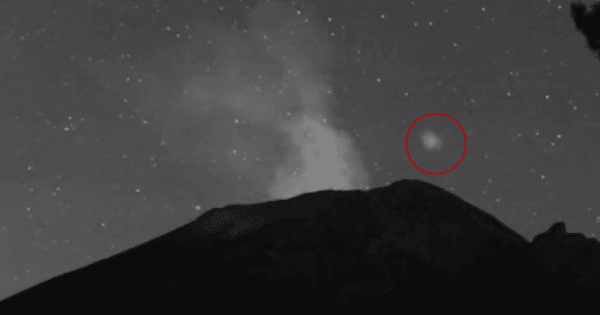 Над активним вулканом Попокатепетль у Мексиці 30 жовтня камери спостереження зафіксували дивне сяйво. Об’єкт кілька секунд зависав біля кратера, після чого раптово зник.