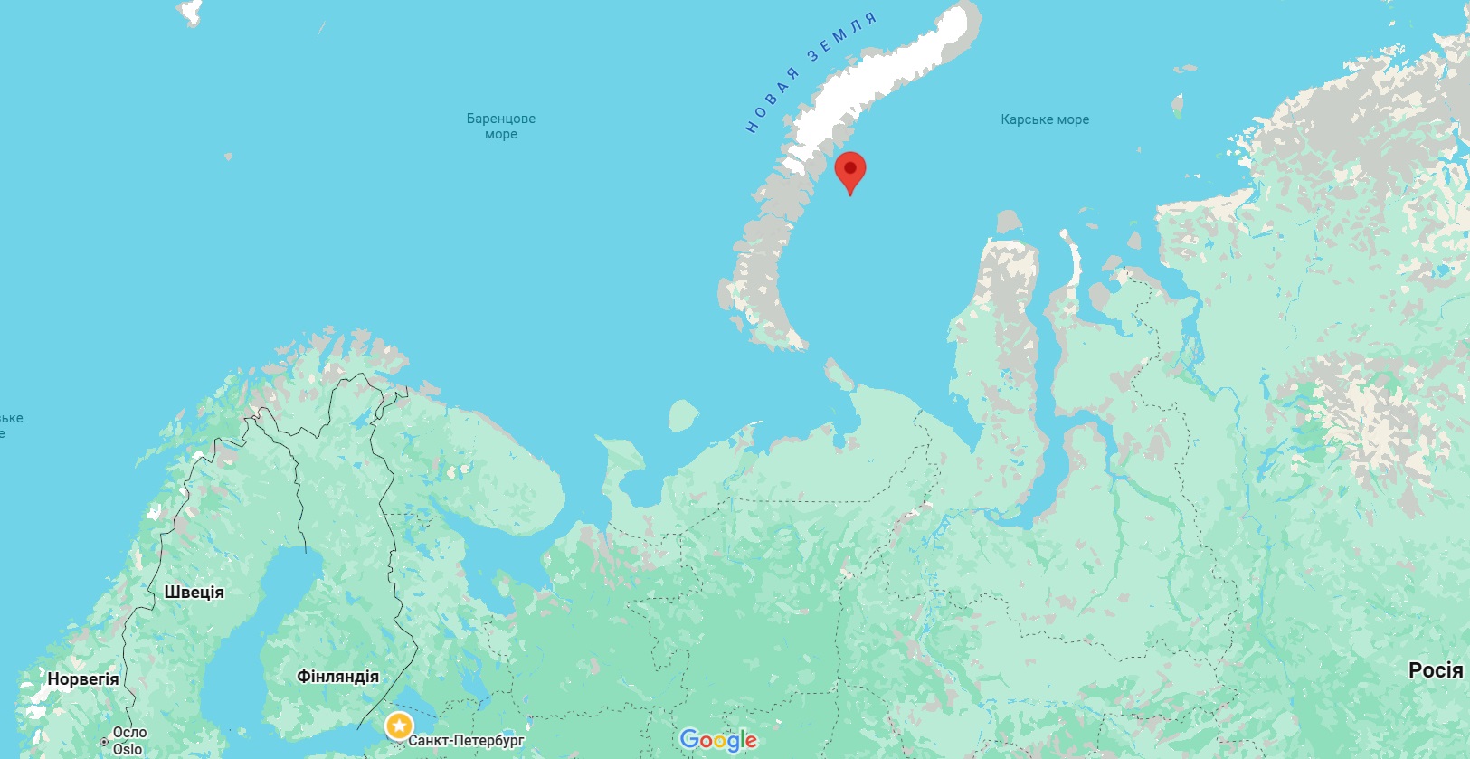 The Barents Observer пояснило, що архіпелаг із 1950-х років Росія використовує для випробувань ядерної зброї, а “Буревісник” випробовують на Новій Землі принаймні з 2017 року. За останні три роки, за даним видання, полігон Паньково “суттєво розширили”.Скріншот: google.com/maps