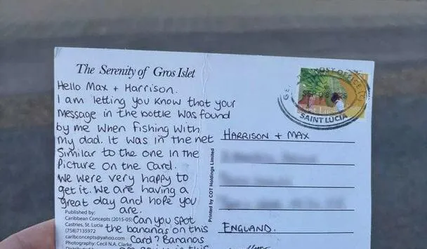У записці було написано: «Привіт, мене звати Гаррісон. У мене є молодший брат на ім’я Макс. Ми з Саут-Шилдс в Англії. Сподіваюся, це до тебе дійде, і сподіваюся, у тебе гарний день», а також вказана його адреса.