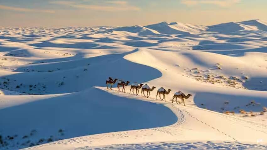 Північ Саудівської Аравії на кілька днів перетворилася на зимову казку. Там випав сніг, укривши гірські схили, пустельні рівнини та піщані дюни. Кадри засніжених ландшафтів із верблюдами на тлі білого покриву миттєво облетіли соціальні мережі, викликавши подив і захват далеко за межами регіону.