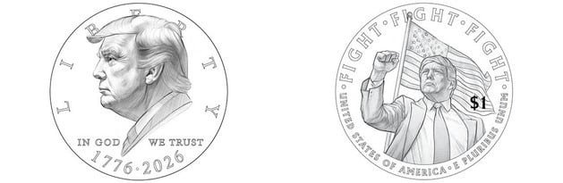 Міністерство фінансів США розглядає план карбування нових монет номіналом 1 долар із зображенням президента Дональда Трампа в рамках зусиль, спрямованих на відзначення 250-ї річниці заснування Америки.