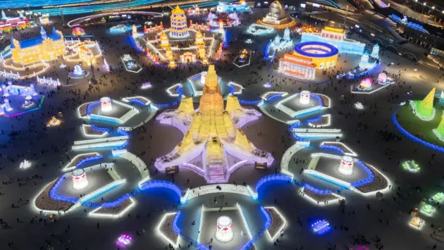 У китайському Харбіні стартував щорічний Фестиваль льоду та снігу, на якому гігантські крижані скульптури сяють у світлі тисяч ліхтарів, а відвідувачі занурюються в крижану воду.