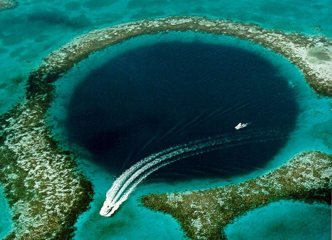 Велика блакитна діра сформувалася наприкінці останнього льодовикового періоду, коли підняття рівня океану затопило стародавні печери. Вона має ширину 300 метрів, глибину 125 метрів і розташована за 100 км від узбережжя Белізу та входить до складу Белізького Бар’єрного рифу — об’єкта Світової спадщини ЮНЕСКО.