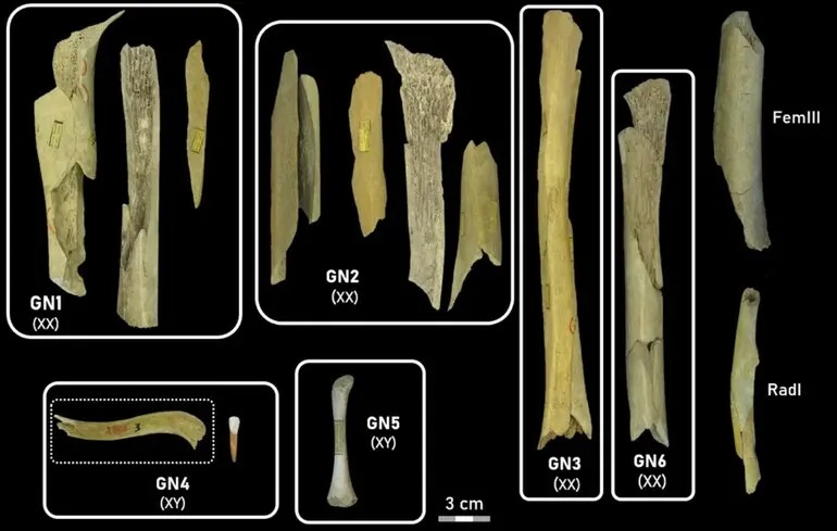 Спочатку вчені максимально повно зібрали пошкоджені кістки та визначили, що вони належали восьми особинам. Генетичний аналіз показав, що четверо з них були дорослими жінками або підлітками, а двоє – хлопчиками. Жінки не були родичками. Аналіз кісток жінок показав, що вони були коротшими і легшими, ніж у інших жінок-неандертальців.