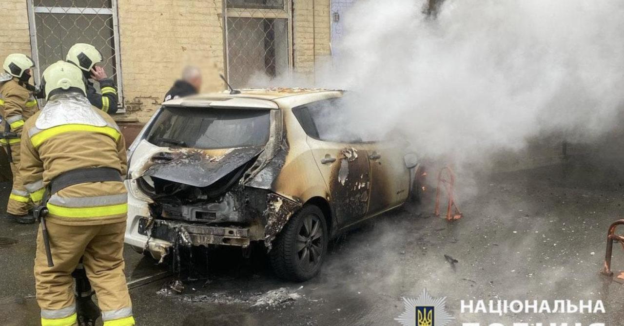 Як повідомили РБК-Україна в ДСНС, у дворі житлового будинку горів автомобіль Nissan Leaf.