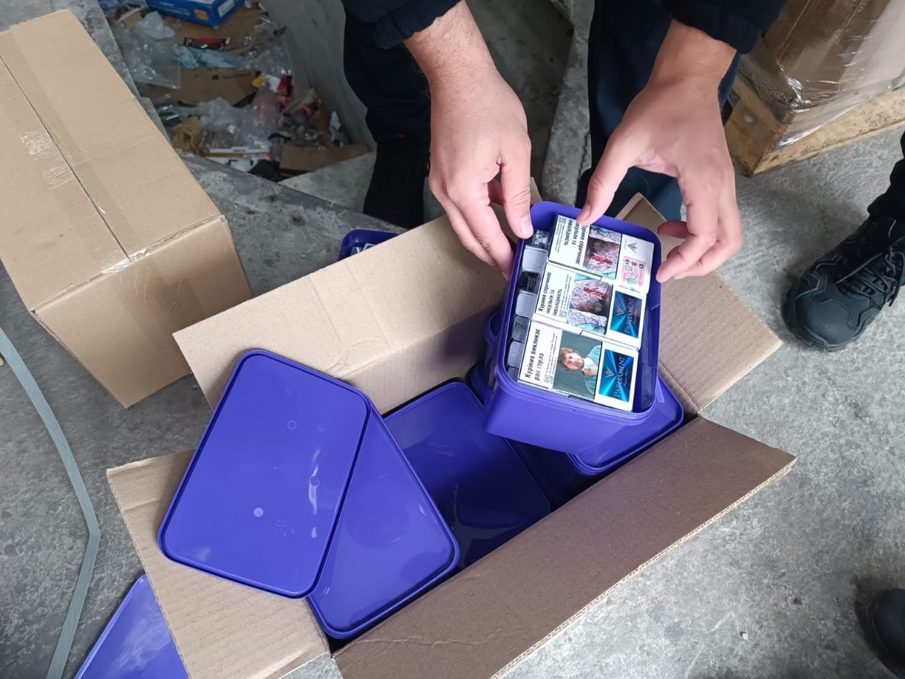 Зокрема, значна частина пластикових контейнерів, які мали б містити морозиво, насправді були заповнені сигаретами з марками акцизного податку України, а також рідиною з характерним запахом вина.