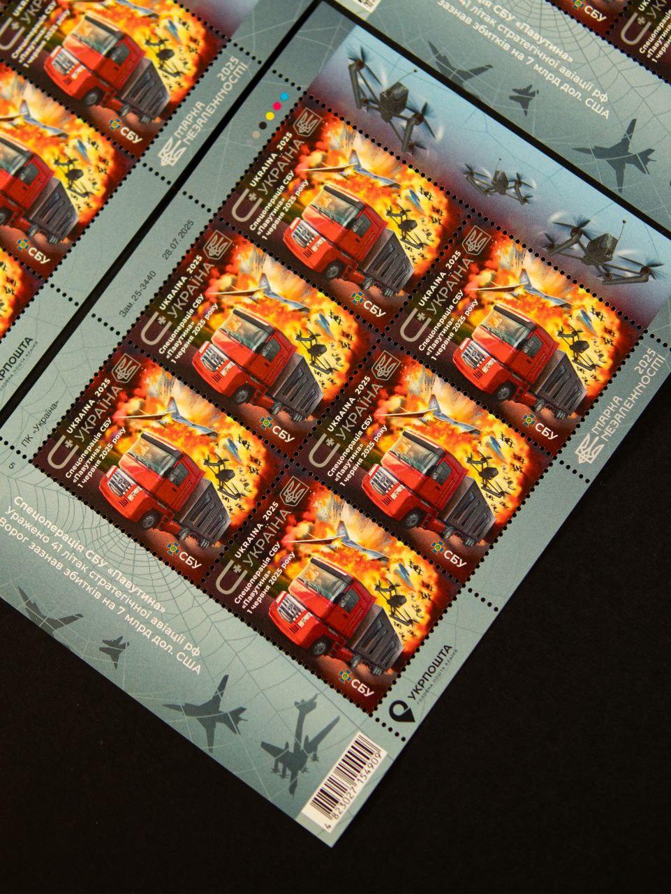 За словами Смілянського, робота над маркою була дуже детальною, і всі деталі на ній відображають те, як готувалась операція. “Цього року ми обрали операцію “Павутина”, яка була проведена Службою безпеки України як таким символом нашої боротьби, символом того, що держава не обов’язково має бути такого ж самого розміру, як ворог. Держава має бути креативною для того, щоб знищувати ворога, – сказав він.
