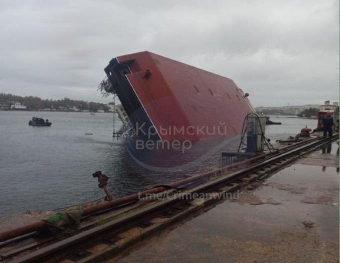 Це недобудований Севморзаводом важкий плавкран ПК-700 «Григорій Просянкін». Його планували розрізати на частини і вивезти для добудови в рф в Северодвинске.