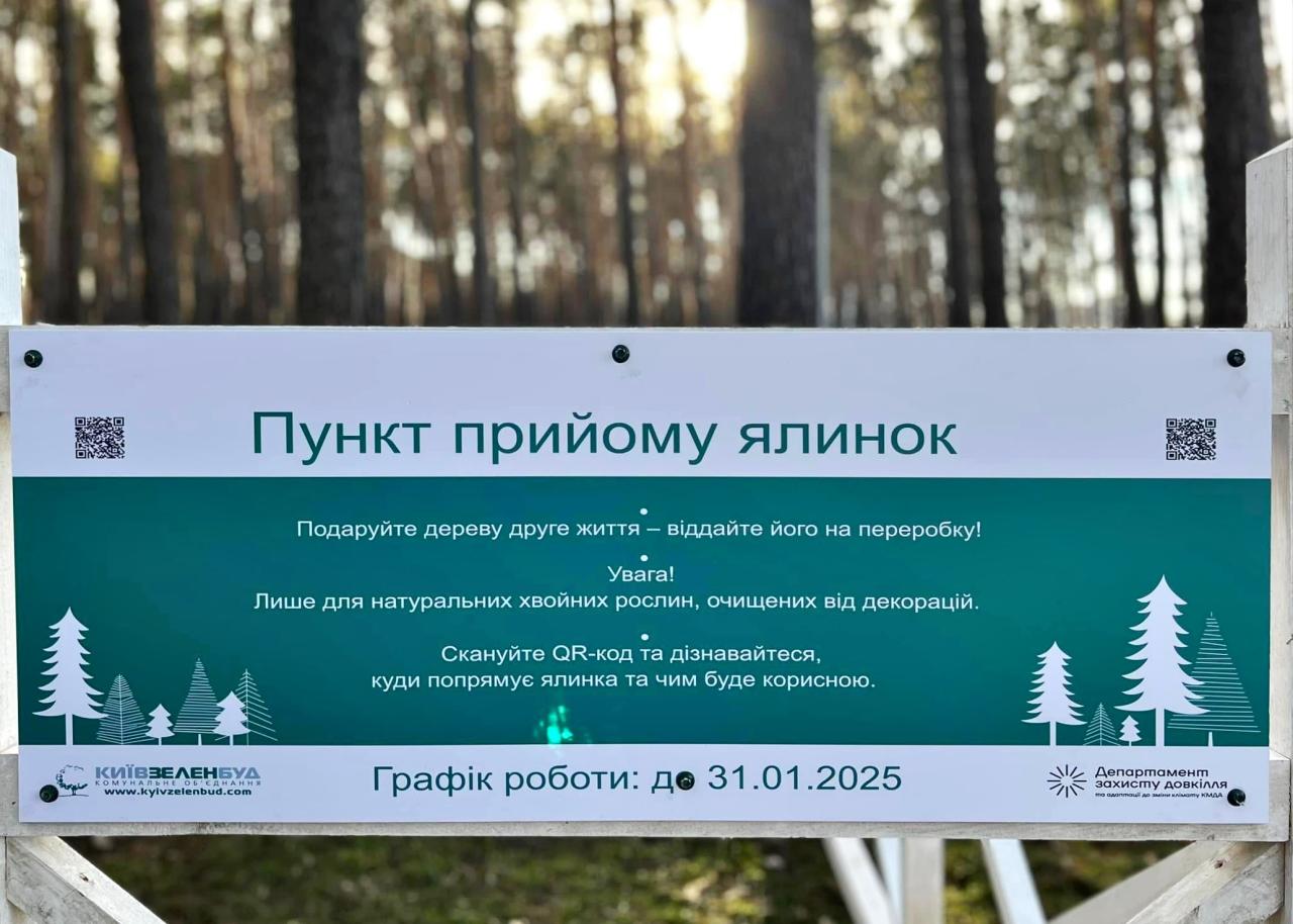 За словами виконувачки обов’язків генерального директора КО «Київзеленбуд» Ольги Манько, кожне дерево, передане на екологічну утилізацію, отримає «друге життя» та буде використане з користю для довкілля, зменшуючи екологічне навантаження і сприяючи раціональному використанню природних ресурсів. «На екологічну утилізацію приймають лише живі хвойні дерева без декоративних прикрас. Пункти працюють до 31 січня у парках і скверах столиці, а також традиційно – на територіях комунальних підприємств з утримання зелених насаджень та лісопаркових господарств», – зазначила Ольга Манько.