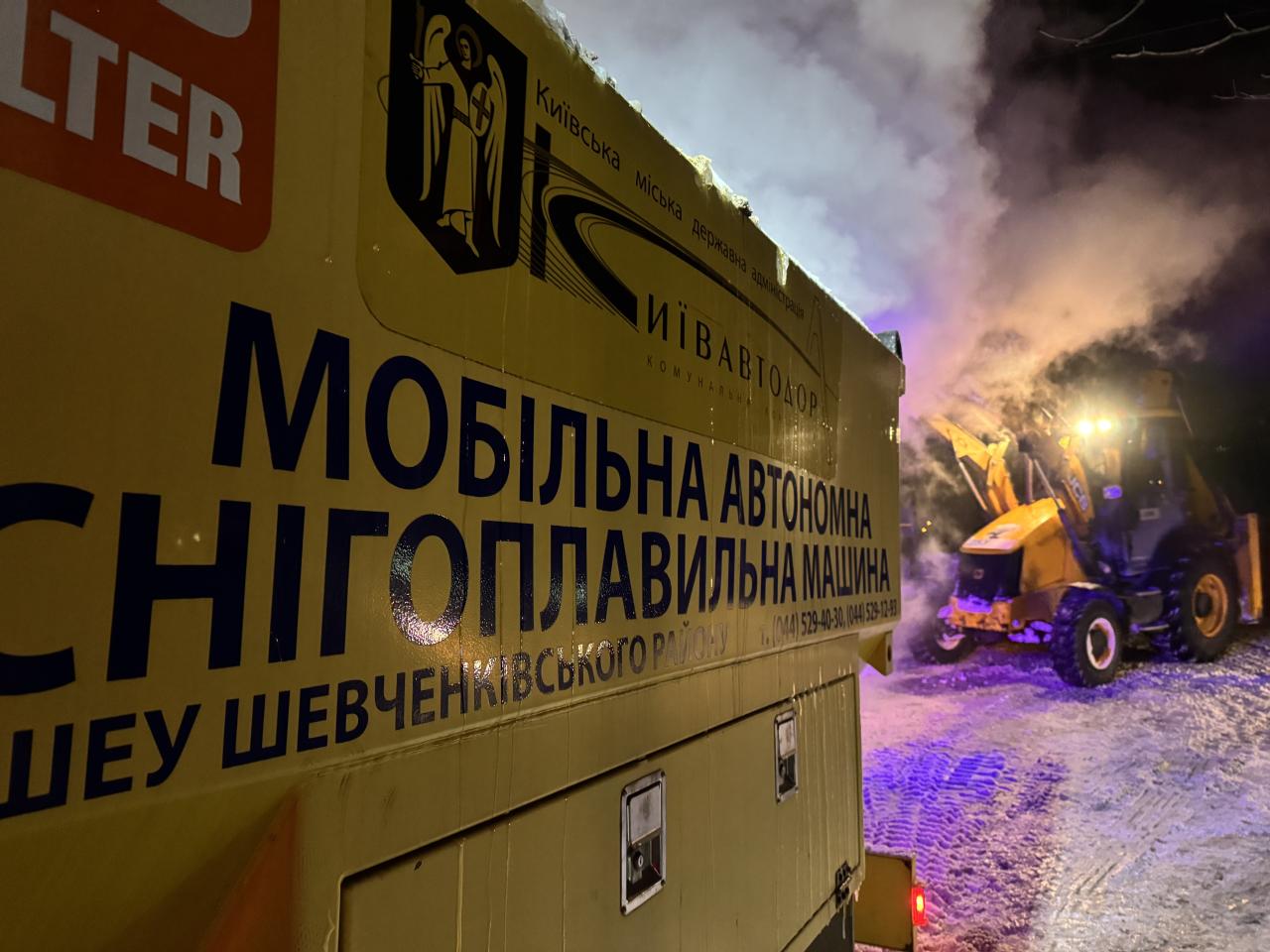 Долати наслідки негоди у Києві дорожникам допомагають мобільні снігоплавильні установки.