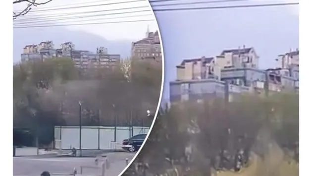 Відео було знято зі сторони Берестейського проспекту. І якщо приблизити зображення, то справді помітно, що на даху розміщені чотири приватних будинки, виконані в єдиному архітектурному стилі. І це не може бути візуальним ефектом чи монтажем.