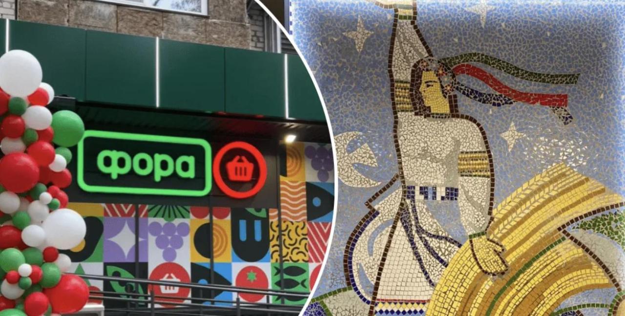 Супермаркет “Фора” на вулиці Гроденській, 1/35 днями відкрився після оновлення, і разом з новим інтерʼєром кияни побачили фрагмент історії, про яку багато хто вже й забув. Під час реконструкції будівельники розширювали простір магазину та зняли старі панелі – за ними й виявили радянську мозаїку. Вона залишилася з тих часів, коли на цьому місці працював гастроном.