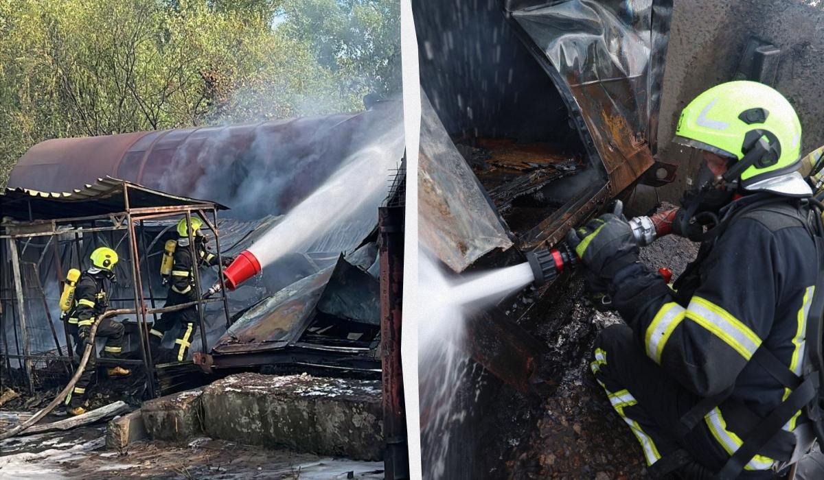 “На відкритій місцевості загорілася побутівка, з подальшим поширенням вогню на розташовану поруч технічну ємність. Пожежу ліквідовано о 17:11 на площі 100 кв. м”, – йдеться у повідомленні.