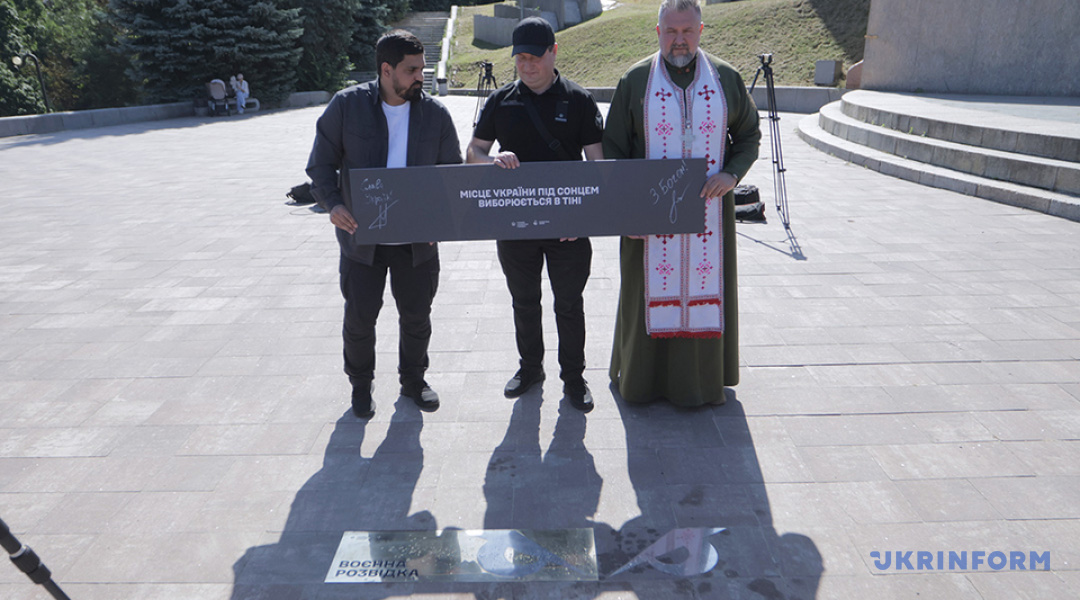 Пам’ятний знак воїнам-розвідникам під слоганом “Місце України під сонцем виборюють у тіні!” встановили на Алеї захисників України як подяку та визнання їхнього внеску у спільну перемогу. Як зазначив керівник Страткому ГУР МО Андрій Юсов, для військових дуже важливо знати й розуміти, що їх підтримує українське суспільство. Саме таким визнанням для воєнної розвідки є встановлення пам’ятного знаку на її честь у середмісті столиці.