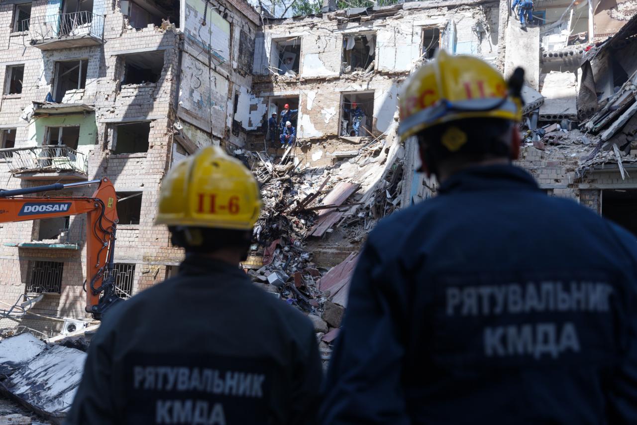 У Києві тривають роботи з ліквідації наслідків нічного обстрілу 23 червня.