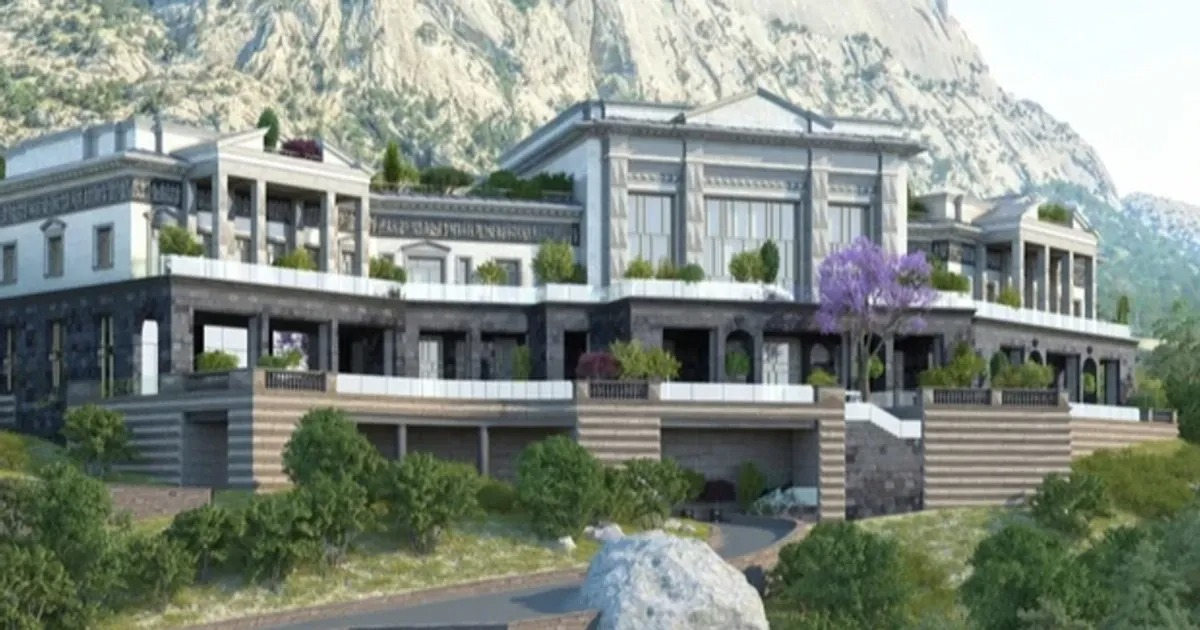 Повідомляється, що головний будинок має площу понад 9000 м², будинок для прийому гостей — майже 5000 м². Також на ділянці є окремі будівлі для персоналу, технічні споруди і новий вертолітний майданчик. А внизу власна набережна, пірс і штучний пляж з білим піском.