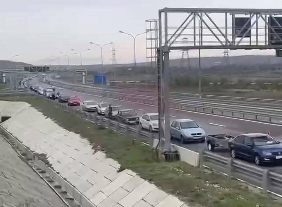 На Кримському мосту утворився величезний затор, що простягнувся вже на 8 кілометрів з боку Краснодарського краю (РФ). За даними окупаційного міністерства транспорту Криму, час очікування становить до 5-6 годин.