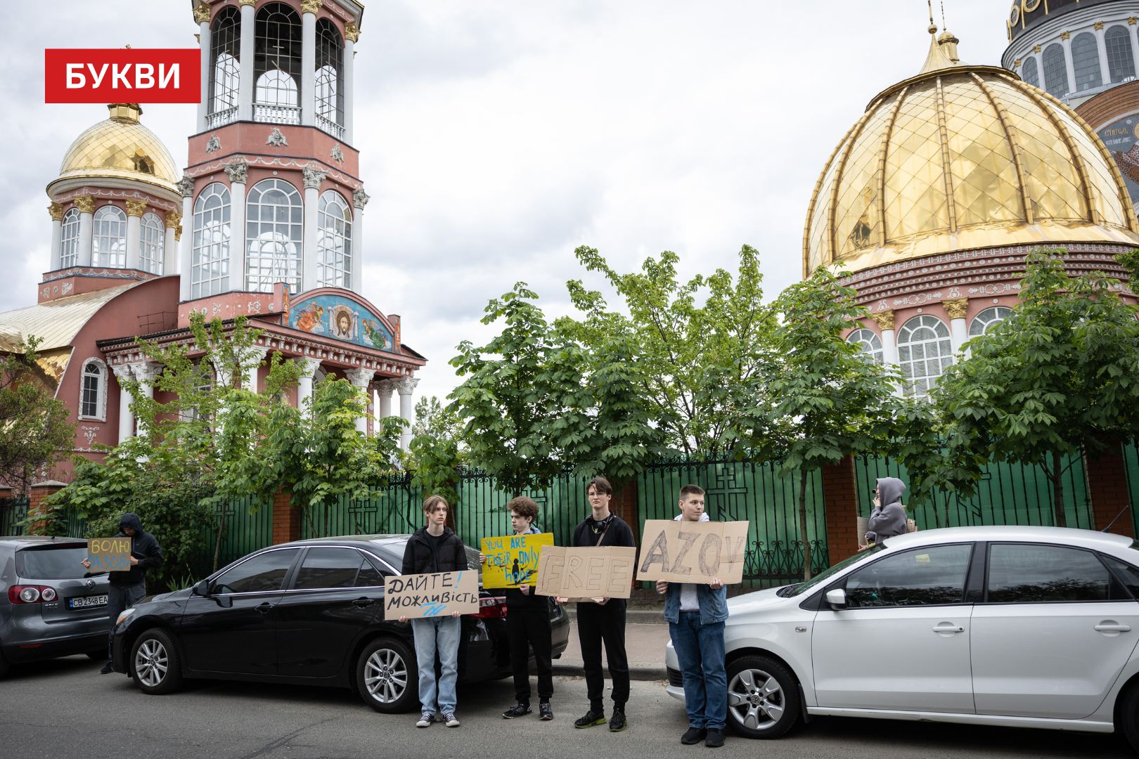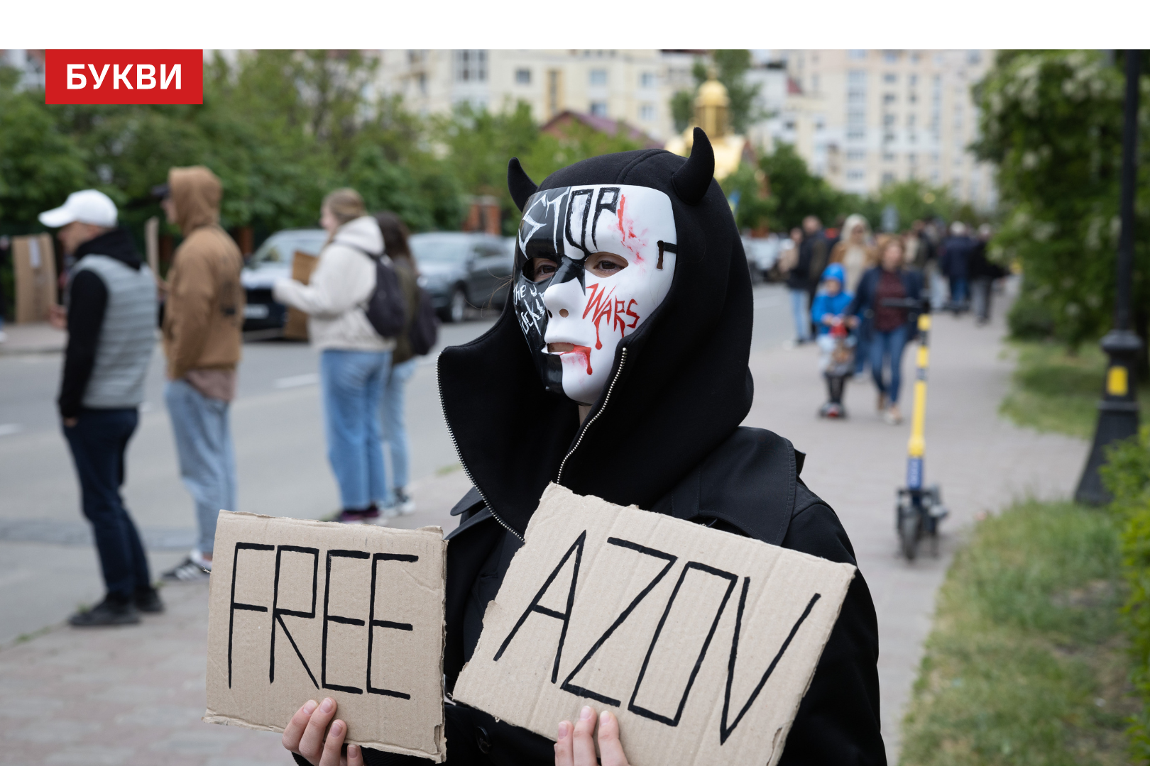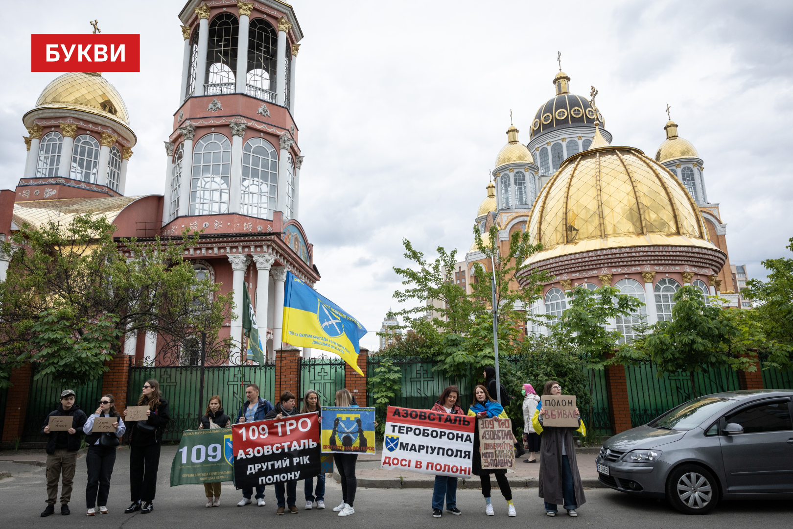 Сотні мітингувальників стояли обабіч дороги, з плакатами “Третя весна у полоні”, “FreeAzov”, “Їх дуже чекають вдома”, “Не мовчи”, “Полон – це пекло”, “Твоя байдужість їх вбиває”.
