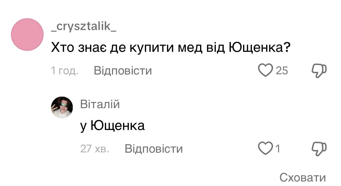Блогер, на ім’я Артем, зняв жартівливе відео, де він говорить, що не любить мед. Після цих слів у кадрі несподівано з’являється Ющенко, який нібито дає хлопцю запотиличник і каже: “Козаче, ти шо, з дуба впав”.