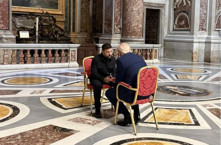 Римська зустріч президента України Володимира Зеленського та президента Сполучених Штатів Америки Дональда Трампа викликала бажання жартувати в українців. У соцмережах з'явились десятки мемів, в яких, наприклад, нагадали про зустріч у Білому домі, коли Зеленському докоряли про відсутність сильних карт. Інші меми обігрували реакцію Трампа на обстріли України та довжелезний стіл на прийомах у Путіна.