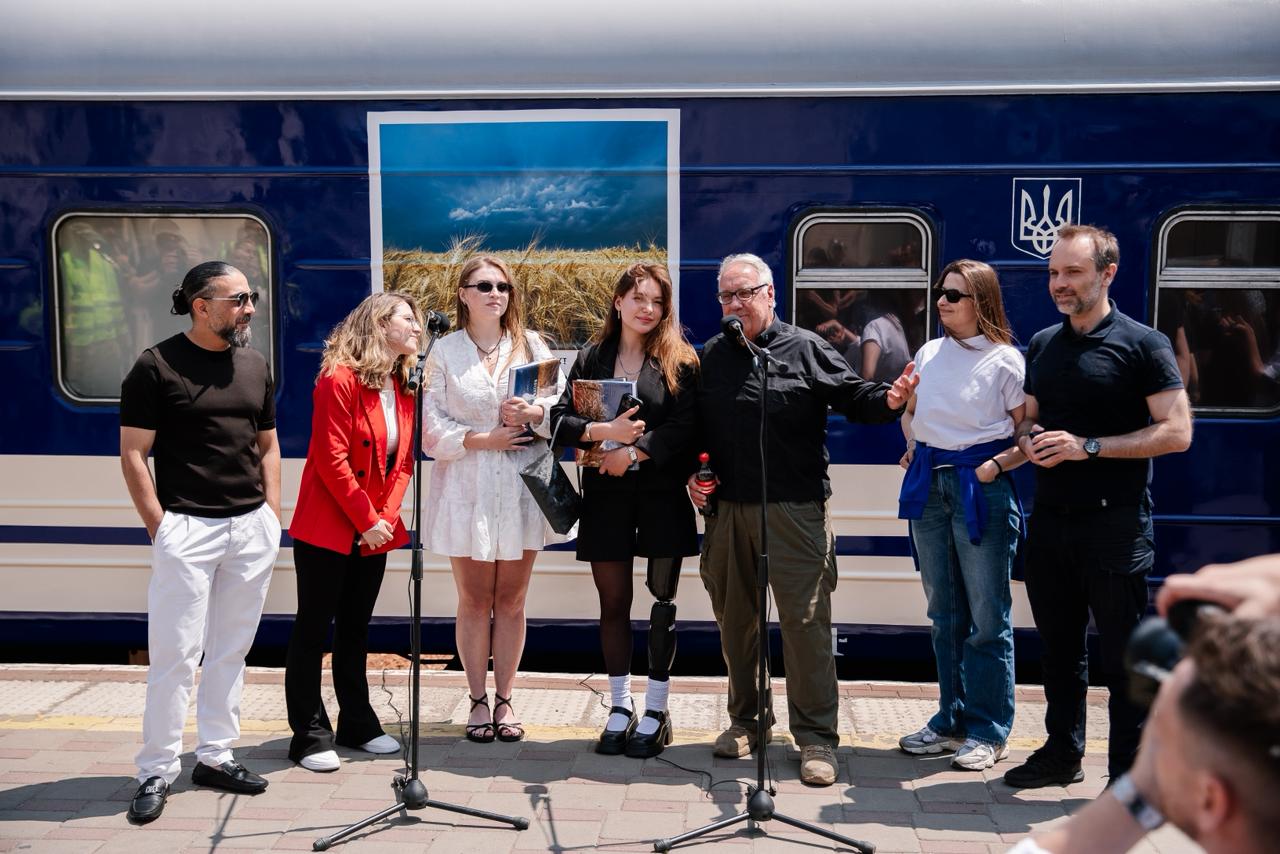 «Мистецький поїзд» вирушає у подорож 63 вокзалами країни — від Одеси, де він перебуватиме до 17 червня включно, до прифронтових регіонів та Карпат. Він несе з собою не просто фотографії, а справжні історії про мужність, надію та силу українського народу.