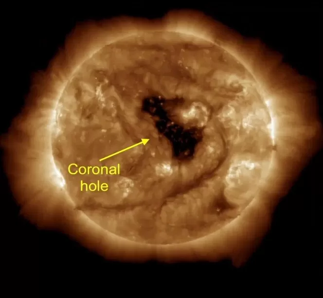 Астрономи повідомляють про появу на поверхні Сонця великої корональної діри, яка нині спрямована безпосередньо до Землі.