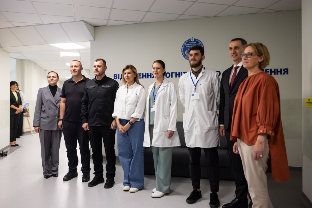 Дружина Президента разом із міністром внутрішніх справ Ігорем Клименком, міністром охорони здоров’я Віктором Ляшком, головою Координаційного центру з психічного здоров’я Кабміну Оксаною Збітнєвою та державним секретарем МВС Інною Ящук відвідала Головний медичний клінічний центр МВС і поспілкувалася з його працівниками про роботу відділення ментального здоровʼя.