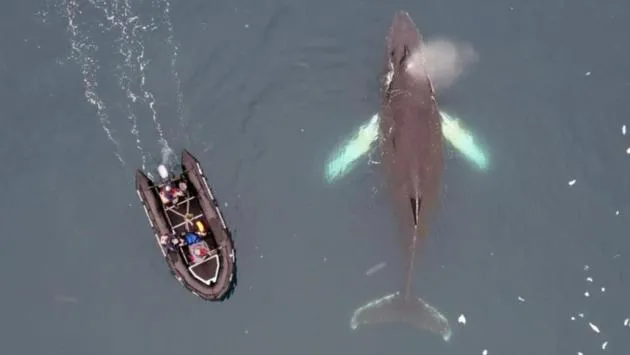 Потрібні лінійка, дрон і човен: полярники показали, як вимірюють китів в океані