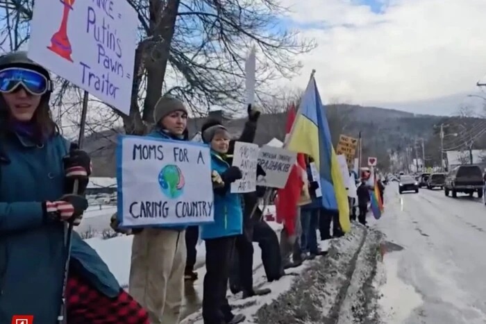До слова, протестувальники демонстрували плакати, які називали Венса «національною ганьбою», звинувачували його в «зраді» та заохочували родину «покататися на лижах у Росії».Люди стояли на тротуарах та снігових заметах вздовж траси з плакатами на яких були написані слова підтримки Україні, а також вислови проти Венса та чинної влади.