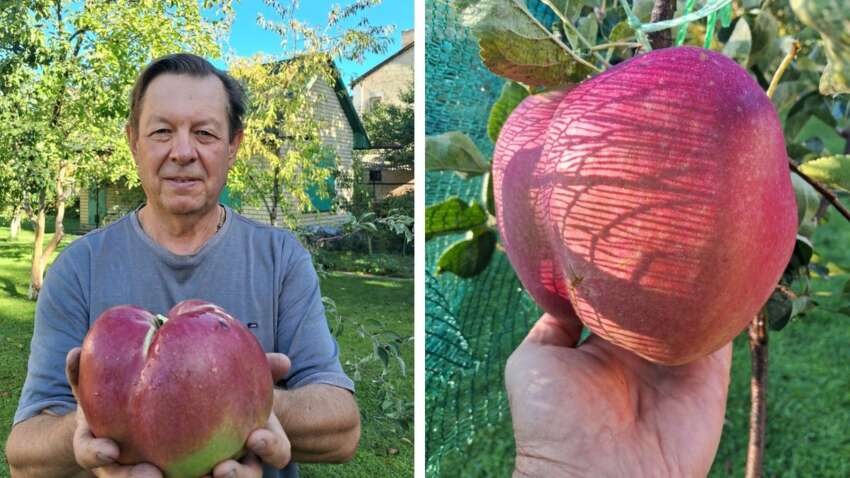 Однак такий результат вимагав не лише вдалого сорту, а й постійної уваги. Щоб яблуко не впало під власною вагою, садівникові довелося застосовувати підв’язки та встановлювати підпори з усіх боків. Інакше гілка не витримала б навантаження.